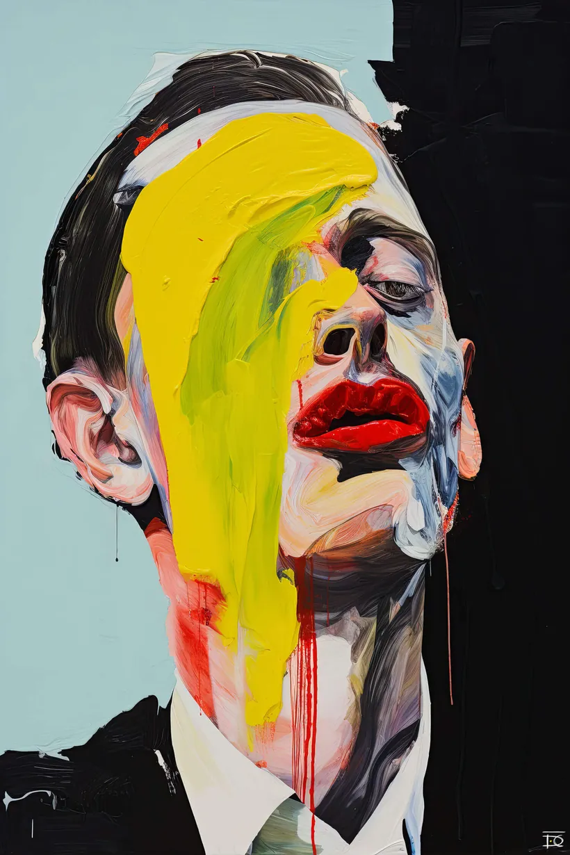The fractures here are not inflicted by war, but by memory, identity, and the silent violence of being. These faces are distorted not by metal, but by pressure, from within and without. In both, the portrait refuses to heal cleanly. And in both, there is a strange, defiant beauty in the decision to remain visible, to let the damage speak.