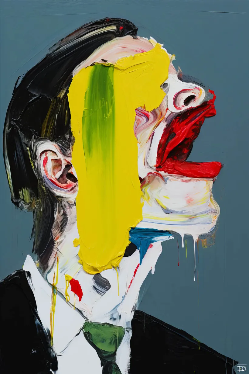 These are not portraits in any traditional sense. They do not attempt to represent; they unsettle. The paint does not describe. It attacks. It buries and reveals, distorts and exposes. Each brushstroke becomes a wound, a gesture of defiance, an act of unmaking.