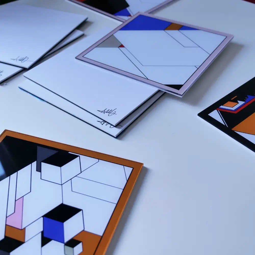 The visual language is intentionally pared down. Geometry is treated as material: squares, cubes, and colour fields arranged by rule. This restraint allows the works to function as markers of time, early experiments whose simplicity highlights the courage of the act.